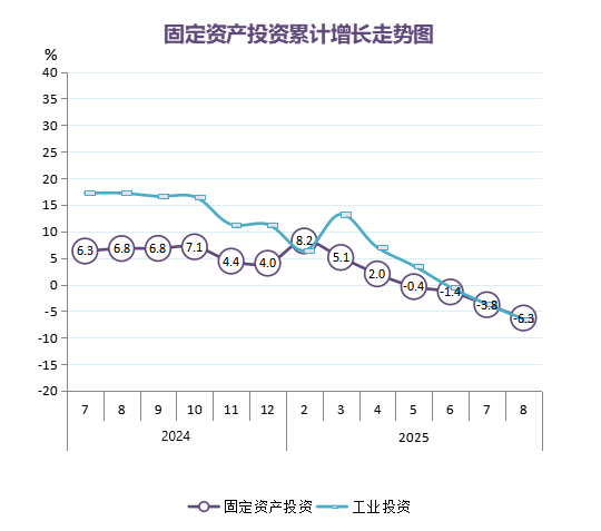 2025年1-8月份,全市固定资产投资2951.65亿元,同比下降6.3%。其中,国有控股投资1075.54亿元,同比增长3%;民间投资1481.50亿元,同比下降8.5%。工业投资1270.43亿元,同比下降6.5%。