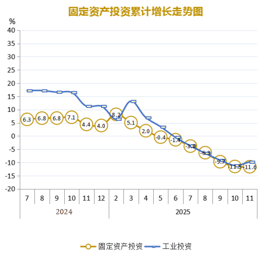 2025年1-11月份,全市固定资产投资3870.36亿元,同比下降11.6%。其中,国有控股投资1422.05亿元,同比下降5.9%;民间投资1953.08亿元,同比下降11.7%。工业投资1663.37亿元,同比下降9.8%。