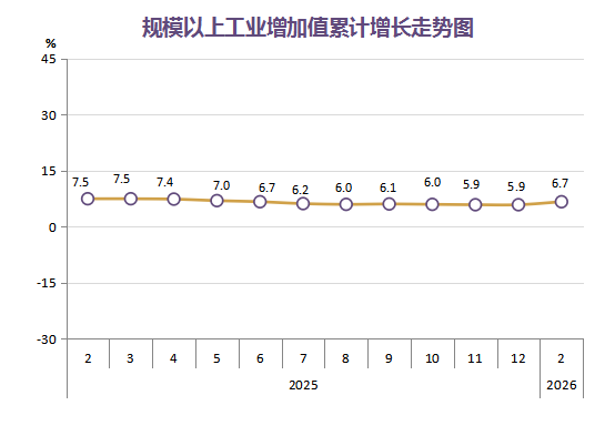 2026年1-2月,全市规模以上工业增加值同比增长6.7%。